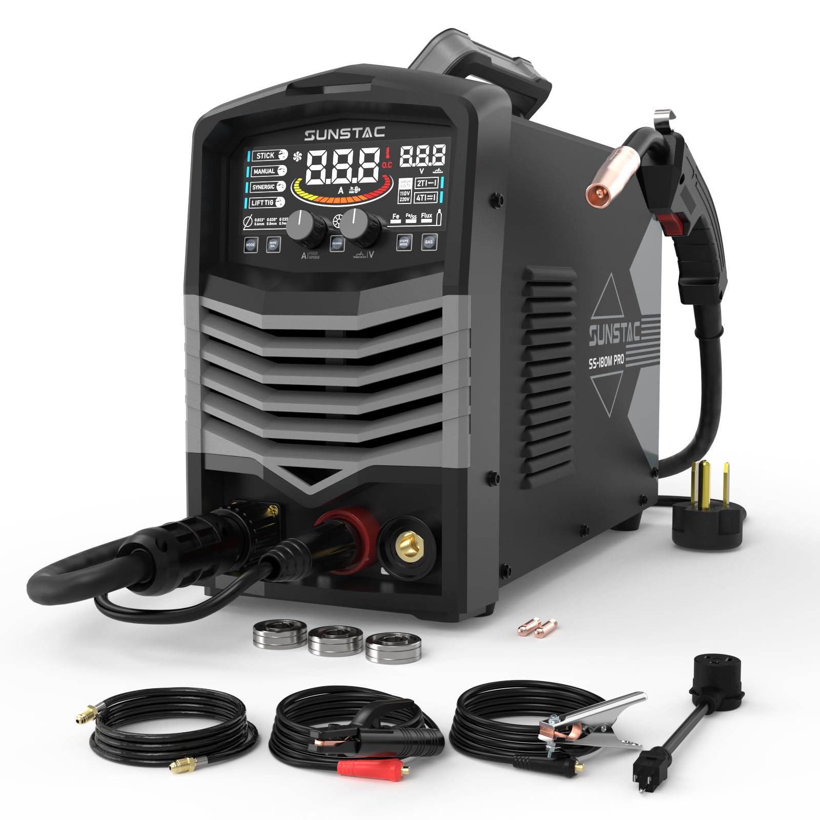 Sunstac 140A Flux Core MIG Welder 110V Gasless Flux Core MIG/Stick Welder/Lift TIG 3 in 1 Welding Machine with LCD Display