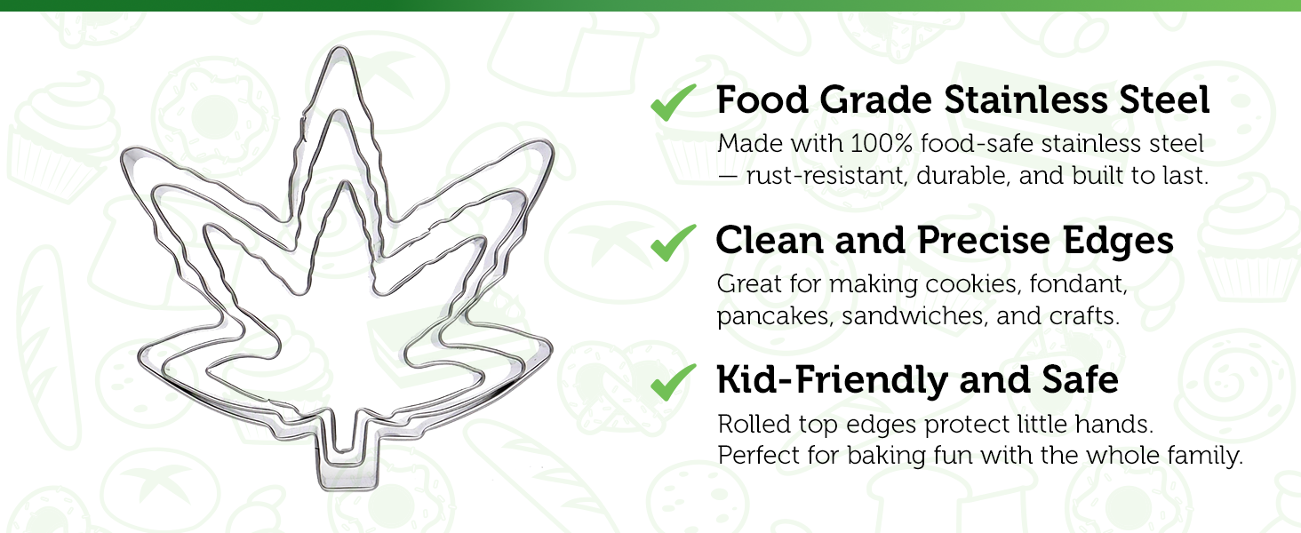 This 3-piece hemp leaf cookie cutter set by Sweet Cookie Crumbs features sharp, rust-resistant stainless steel blades designed for precision cutting. Measuring 5.9 x 4 x 1 inches, these versatile cutters are perfect for shaping cookies, pancakes, sandwiches, fruits, and crafts. Dishwasher-safe for easy cleanup, they combine durability with playful design to elevate your kitchen creativity and themed celebrations.