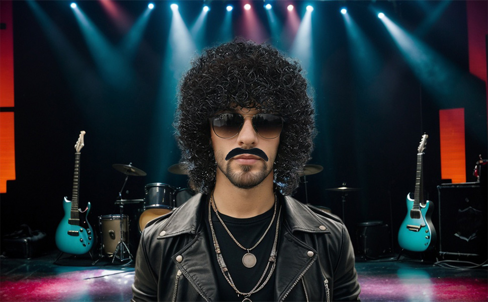 Mens Short Curly Black Mustache Beard Afro Wig California Rocker | Desertcart Kenya