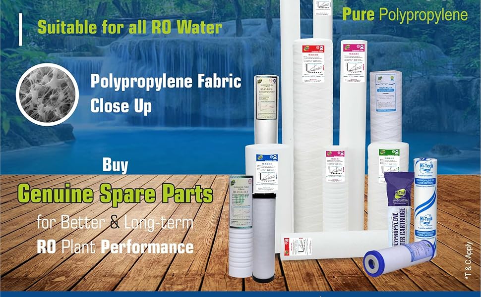 The Hi-Tech 5 Micron 10-inch PP Spun Filter Set is a 5-piece cartridge kit designed to fit all types of RO water purifiers. Made from 100% virgin polypropylene, it offers a nominal 5-micron filtration rating that effectively removes sand, silt, rust, and scale particles. Certified by NSF, this filter set ensures high dirt holding capacity and reliable performance for residential, commercial, and municipal water purification needs.