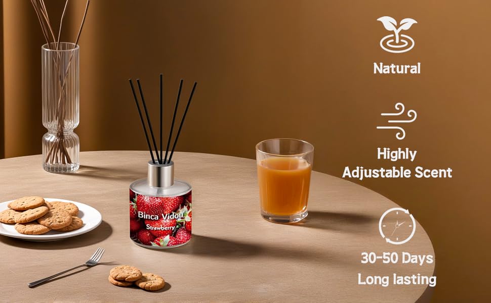 The Binca Vidou Reed Diffuser 50ml Pack of 3 offers a sophisticated trio of Apple, Lemon, and Strawberry scents, each infused with up to 30% natural fragrance oil for a powerful aroma lasting up to 50 days. Designed for versatile use across bedrooms, offices, and bathrooms, this flame-free, smoke-free diffuser set includes 12 reeds for customizable scent intensity, making it an elegant, low-maintenance home fragrance solution and a perfect gift choice.