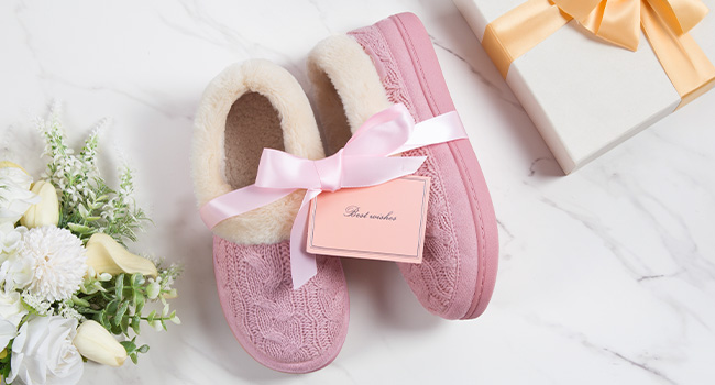 HomeTopWomen's Bootie Slippers Warm Soft Memory Foam Non-slip Indoor House Shoes with Fuzzy Collar
