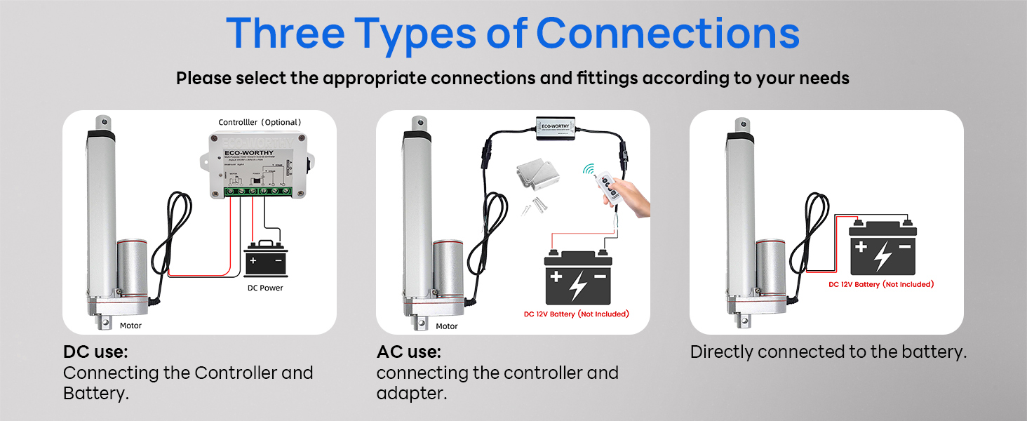 The DCHOUSE 16" Stroke Linear Actuator is a powerful and versatile solution for various applications, featuring a 400mm stroke, a maximum pushing force of 1500N, and durable aluminum construction. With IP54 protection and a wireless remote, it ensures reliable performance and ease of use, making it ideal for modern electric furniture and devices.