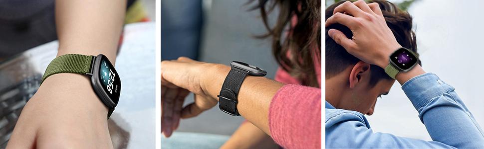 Fintie, a quality product within your reach!Tech Specs:1. Material: Soft Woven Nylon2. Color: Black, Olive, Desert Tan, Pink, Blue, Purple, Colorful3. For Wrist Size: 5.51" – 8.07" (140mm - 205mm) (There might be minor bias because of manual measurement.)Compatible with Fitbit Versa 4 / Fitbit Sense 2 / Fitbit Versa 3 / Fitbit Sense Smartwatch .Package includes: 1 x Soft Nylon Watch Band