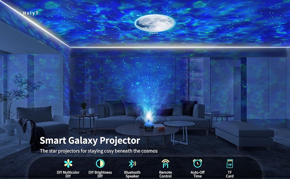 The Galaxy Projector is a modern LED star and planet projector featuring 10 planets, 32 color modes, and 360° dynamic rotation. It includes a Bluetooth stereo speaker with sound-activated lighting, remote control, and offers an immersive educational and decorative experience for bedrooms or events. Compact and solar powered, it’s designed for easy use and backed by a 12-month warranty.