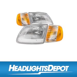 This 4-piece HEADLIGHTSDEPOT halogen headlight set offers a perfect OEM-style replacement for 1997-2002 Ford Expedition and 1997-2004 F-150 Heritage models. Featuring 55-watt halogen bulbs, DOT and SAE certification, and a hassle-free 1-year warranty, it delivers reliable brightness and safety with an easy fit for classic Ford trucks.