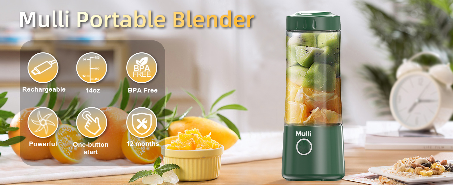 I’m really happy with the Mulli Portable Blender! This handy mini blender is USB rechargeable, making it perfect for travel, gym, work, or anywhere you want a quick smoothie or shake. The six stainless steel blades do a great job blending fruit, ice, and protein powder into smooth drinks in just a minute or two.The compact size means it fits easily in your bag or cup holder, and the simple one-button operation makes it easy to use—just add your ingredients, blend, and enjoy straight from the cup. Cleanup is a breeze: just add water and a drop of soap, blend, and rinse.The USB charging feature means you can power it up from your laptop, power bank, or car charger, so you’re never stuck without your blender. The safety features (like the lid lock) help prevent spills or accidents, and the sturdy build holds up well to daily use.If you want a reliable, portable blender for fresh smoothies and shakes wherever you are, the Mulli Portable Blender is a fantastic choice!