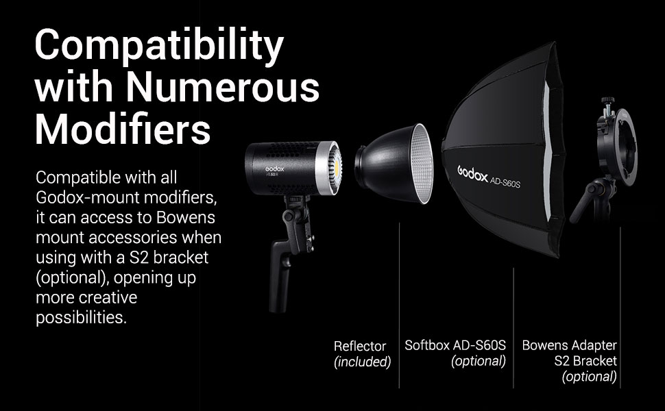 The Godox ML60Bi is a powerful 60W bi-color LED video light that offers adjustable color temperatures from 2800K to 6500K, ensuring perfect lighting for any setting. With a high CRI of 96 and TLCI of 97, it delivers exceptional color accuracy and features 7 preset FX lighting effects for creative versatility. Its silent mode is ideal for sound-sensitive environments, and at just 0.77Kg, itβs designed for portability without compromising on performance.