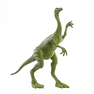 The Mattel Jurassic World Camp Cretaceous Fierce Force Gallimimus action figure stands 7 inches tall with movable joints and a single-strike motion feature. Designed with realistic sculpting and authentic paint, it offers dynamic play for kids 3 and up. Compatible with the Jurassic World Facts app, it enhances learning with interactive AR experiences.