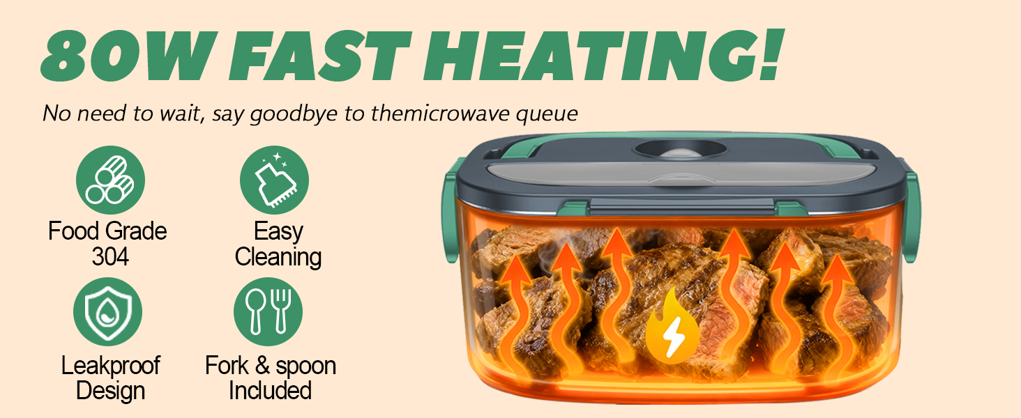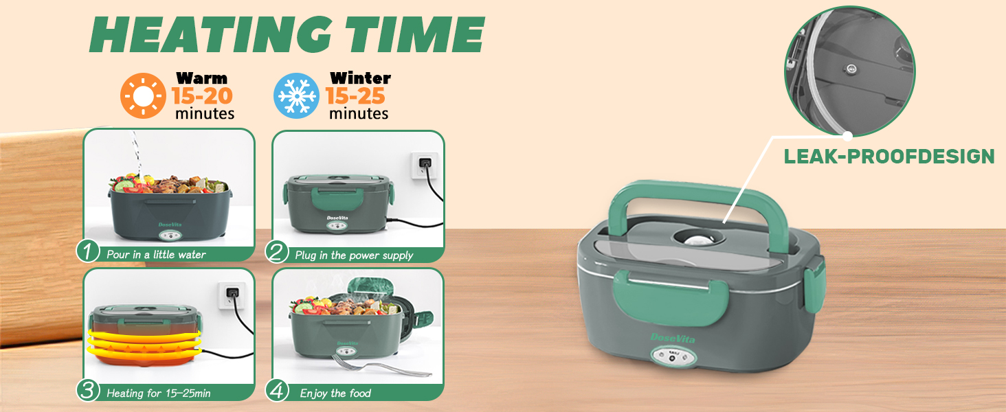 The Dosevita Electric Lunch Box is a versatile 80W heated lunch solution featuring rapid PTC heating technology that warms meals in 15-25 minutes. Designed for professionals on the move, it supports dual voltage inputs (12V/24V for vehicles and 110V for home/office) and includes a spacious 1.5L stainless steel container plus a 0.45L fruit compartment. Complete with utensils and an insulated carry bag, it’s a durable, practical upgrade from cold sandwiches, backed by lifetime satisfaction support.