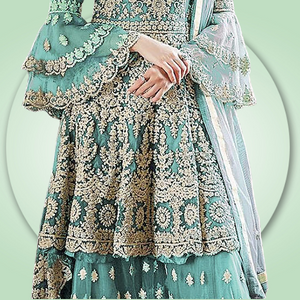 Women's Beige Net Semi Stitched Top With Stitched Net Bottom and Net Dupatta Embroidered Flared Top Dress Material (Kurta Palazzo Set) (D-1027)_Free Size