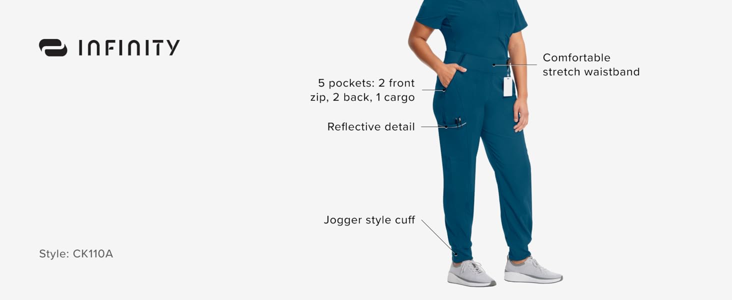InfinityJogger Scrub Pants for Women 4-Way Stretch with Mid Rise, Cargo Pocket, Superior Performance, and Comfort CK110A
