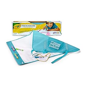 The Crayola Color and Erase Mat is a giant, reusable coloring pad that includes 6 ultra-clean washable markers and a wipe cloth, making it a perfect travel activity for kids aged 3 and up. Its non-toxic materials ensure safety, while the portable design allows for creativity on the go.