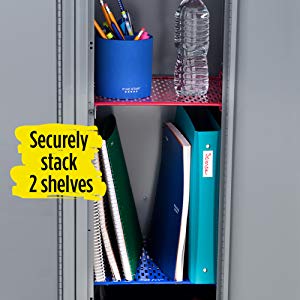 Bought for my son’s middle school locker.We purchased a grey one before and loved it so other son needed one now.Fits in locker GREAT.Regular school size half locker or large school size locker it works great inSturdy and love that the metal holes on the base make so nothing like a pencils will fall through.Great designWhat you see in image and product description is correctLove the blue colorTrusted name brandWISH they had tons more color options as that would be nice to haveEasy to assemble and take apart