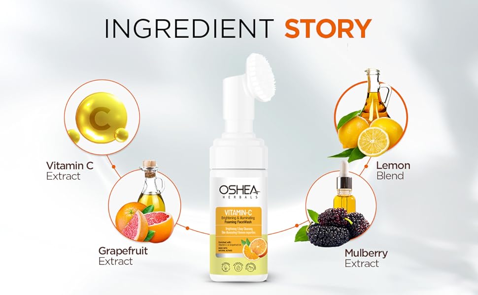 Oshea Herbals Brightening & Illuminating Foaming Facewash is a 150ml skincare essential enriched with Vitamin C and Grapefruit Extract. Designed for all skin types, it deeply cleanses impurities while targeting pigmentation to reveal a brighter, more even-toned complexion. Made in India by OJB Herbals Pvt Ltd, this gentle yet effective facewash transforms your daily routine into a glow-enhancing experience.