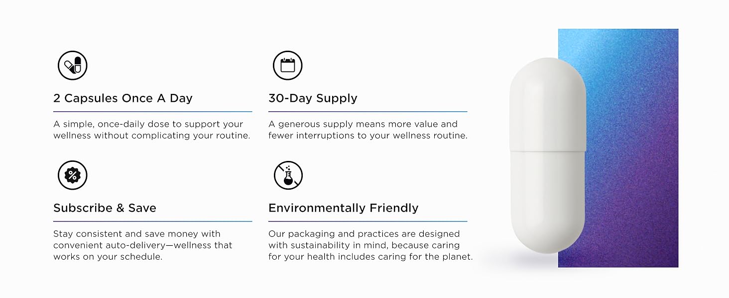 - EFFORTLESS DAILY ROUTINE - Just two capsules a day keep you on track for a healthier, longer-lasting you—no complexity, just results.