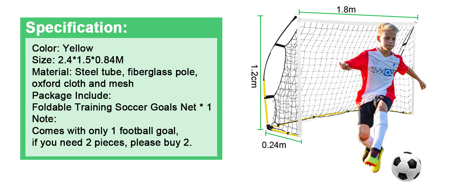 This Portable Soccer Goal is a versatile training tool measuring 2.4m x 1.5m, designed for players of all ages. Constructed with durable steel and fiberglass, it ensures stability and longevity. The goal is easy to assemble in under 10 minutes and comes with a convenient carry bag, making it perfect for indoor and outdoor use. Ideal for fostering a love of soccer in kids and teens, this goal is a must-have for any aspiring athlete.