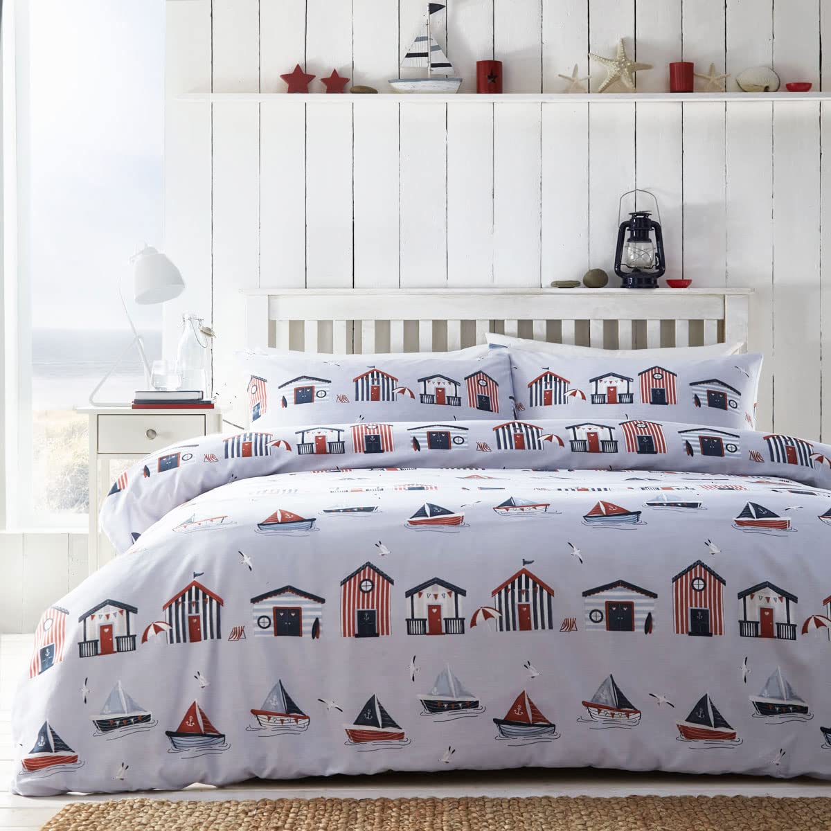 HOMEMAKER BEDDINGDuvet set beach hut sailing boat seaside quilt cover pillow cases (Double)
