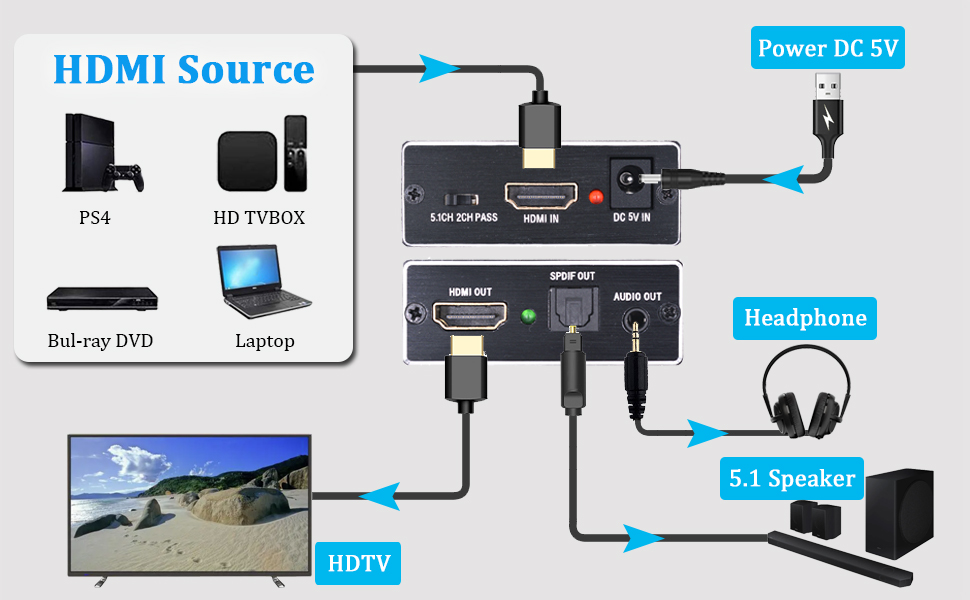 The SDKDZKG 4K x 2K HDMI Audio Converter Extractor splits HDMI input into HDMI, optical SPDIF, and 3.5mm stereo outputs, supporting up to 4K 30Hz video and multiple high-definition audio formats. Compatible with a wide range of devices, it offers plug-and-play convenience backed by a 1-year warranty and lifetime support.