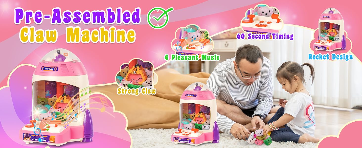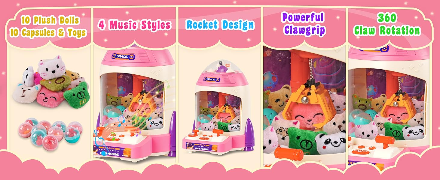 Bambibo Mini Claw Machine Pink Rocket Shaped Snack Vending Arcade | Desertcart Kenya