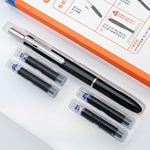 The OASO K016 Retractable Fountain Pen Set features a 0.5mm iridium nib for smooth, precise writing, combined with a retractable design that prevents ink drying and nib damage. Its ergonomic double-groove grip promotes proper writing posture, making it ideal for students and professionals. The set includes 4 blue ink cartridges, ensuring extended use, all housed in a sleek Deep Sea Black body thatβs both stylish and practical.