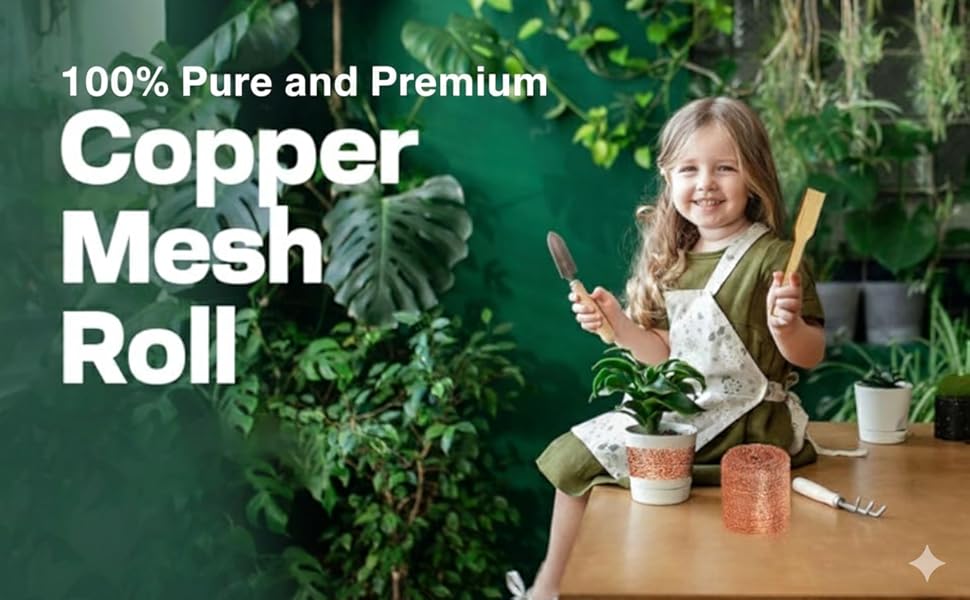 This Copper Mesh Rodent Control Kit features a 5-inch by 35-foot roll of rustproof, fire-resistant copper wool mesh with 0.18mm wire thickness, designed to block rodents effectively. The kit includes precision scissors and a packing tool for easy DIY installation, making it a versatile, durable, and sustainable solution for sealing holes and protecting your home and garden from pests.