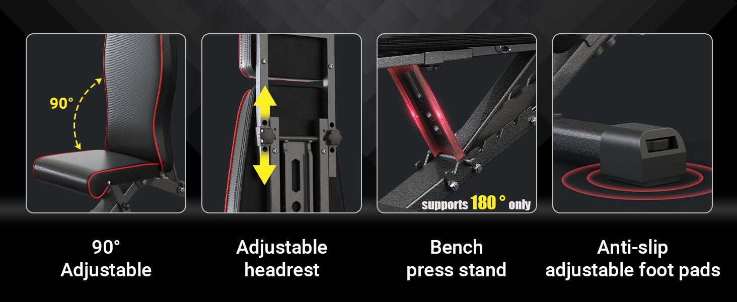 The YOLEO 880LB Adjustable Weight Bench is a heavy-duty, foldable workout bench designed for home gyms. Crafted from durable alloy steel, it supports up to 880 pounds and offers 270° of adjustable positions including a 90° vertical backrest for versatile full-body workouts. Its quick 10-second fold and compact storage save up to 80% space, while the extended headrest and integrated bench press stand provide enhanced comfort and stability for serious strength training.