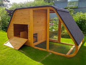 The Cocoon Noah’s Ark Chicken Coop is a premium curved wooden hen house measuring 176x70x82 cm, designed to comfortably house up to 4 medium birds or 6 bantams. Featuring a built-in night shutter for enhanced predator protection, a removable rubber floor for quick cleaning, and a flexible interior with sliding doors and removable nest boxes, it combines security, hygiene, and style. Its sleek design makes it a standout addition to any garden, suitable for chickens, ducks, rabbits, and other small poultry.