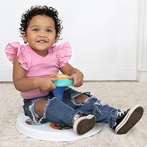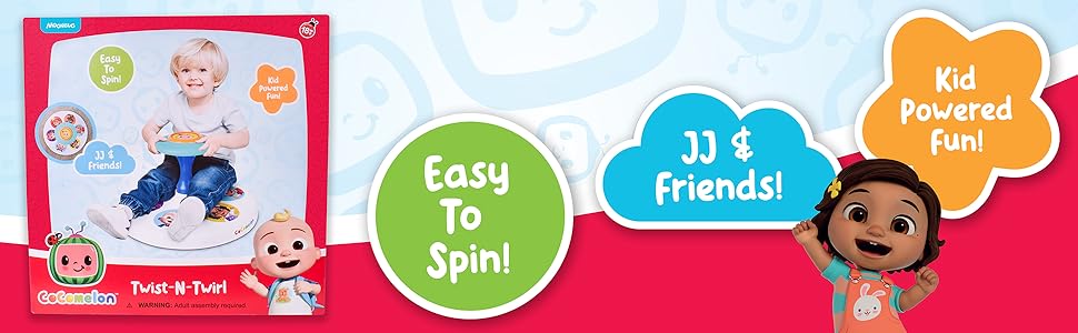 The Cocomelon Twist-N-Twirl Spinning Activity Toy is designed for toddlers 18 months and up, supporting up to 42 pounds. It features a sturdy base and easy-grip handle for safe spinning, with 6 colorful circles to promote color recognition. This toy encourages development of balance, coordination, dexterity, and fine motor skills through active indoor play, making it a perfect gift for early childhood growth and endless fun.