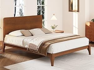 This King size Farmhouse Bamboo Bed Frame combines eco-friendly 100% bamboo construction with a sleek mid-century modern design. Engineered for durability with strong support legs and no box spring needed, it offers easy assembly and a sustainable upgrade to your bedroom.
