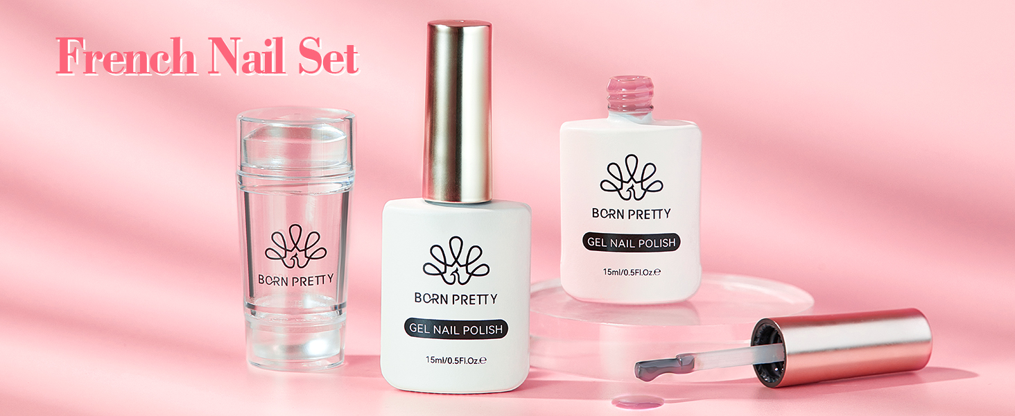 The Born Pretty French Manicure Kit includes a long French tip stamper, white gel polish, and a nude pink glitter jelly gel polish, all designed for easy, durable, and stylish French manicures. Cure under UV/LED light in 60-120 seconds for vibrant, chip-resistant nails lasting 21-28 days. The soft silicone stamper ensures precise application on curved nails, making professional-quality nail art accessible at home.
