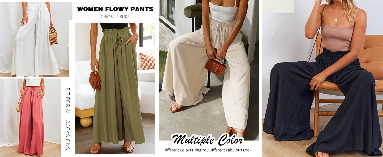 Pasgreson Womens Casual Wide Leg Pants Flowy Ruffle Elastic Drawstring | Desertcart Kenya