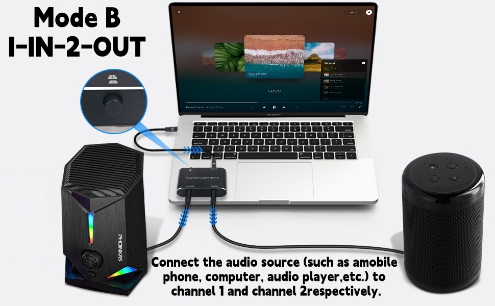 This bidirectional 3.5mm stereo audio switcher enables quick toggling between two audio sources or outputs without unplugging cables. Featuring universal compatibility with most 3.5mm devices, a compact aluminum design, and plug-and-play convenience, it’s the perfect tool for streamlined, clutter-free audio management across PCs, phones, headphones, and speakers.